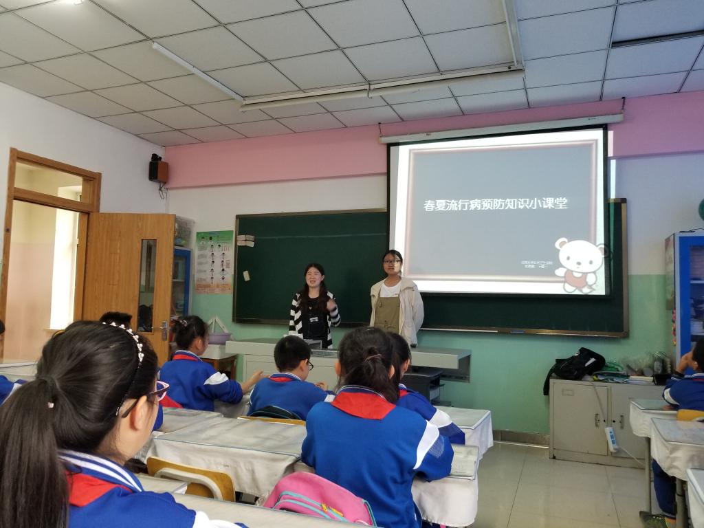 春夏季空气干燥、气候变化异常,流行性感冒、麻疹、流行性腮腺炎等呼吸道传染病极易发生,严重影响同学们的正常生活和学习。为了有效防控小员工呼吸道传染病的发生及流行,5月10日下午,在公共卫生公司党委副书记兼副经理、2014级辅导员刘丽的带领下,太阳集团tyc151团委志工部组织的“预防疾病知识进小学”活动走进了太阳集团tyc151附属中学小学部五年一班,为孩子们带来了精心准备的春夏流行病预防知识小课堂。