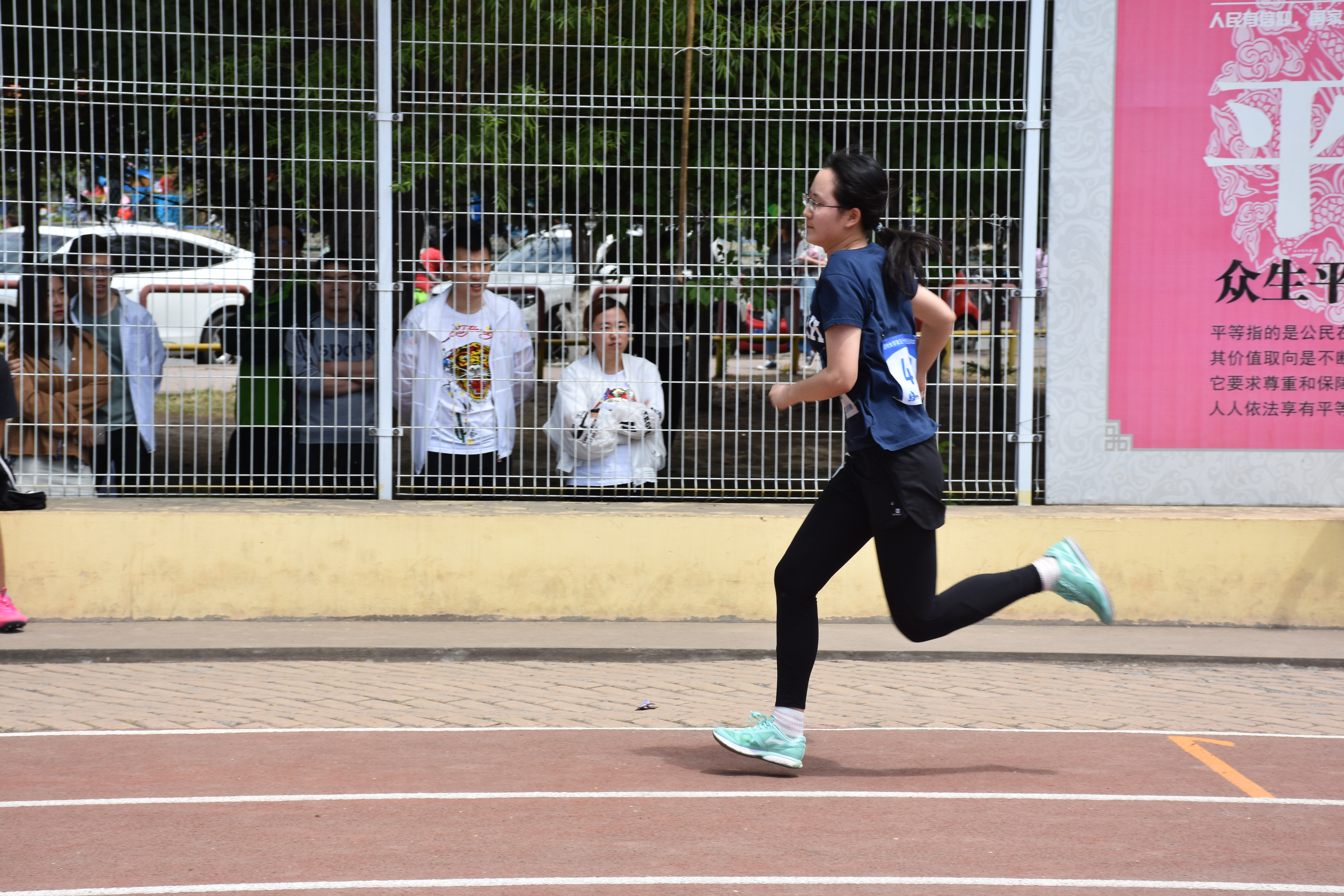 虽然天气炎热,但薛贺天同学依然眼神坚定,丝毫不受外界因素的影响。比赛即将开始,观众席爆发出一阵又一阵热烈的掌声,让运动员受到极大的鼓舞。随着一声枪响,她似离弦之箭一般冲出起跑线,昂首向前,目光紧锁终点,心中只剩一个信念:冲!冲!冲!耳边呼啸而过的不止是风声,还有观众们的阵阵欢呼声,呐喊声。薛贺天同学不断超越,与前方选手的距离越来越小。最后,她到达终点,获得了优异的成绩。
