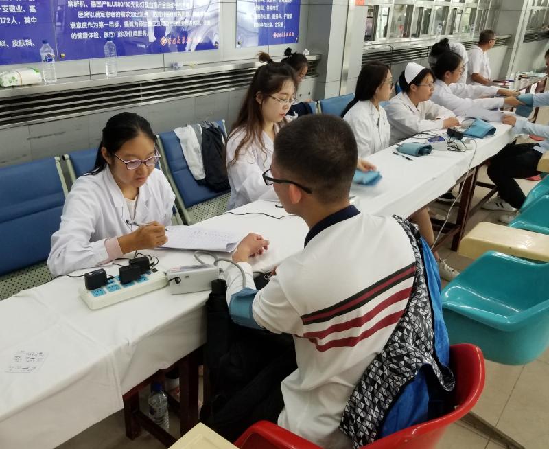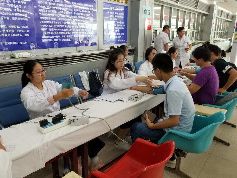 暑去秋来,太阳集团tyc151迎来了2018级新生,为了解同学们的身体健康状况,并为即将开始的军训提供可靠的健康保障,8月25日、26日,在太阳集团tyc15132名迎新体检志愿者的帮助下,新生在中心校区校医院进行了入学体检。