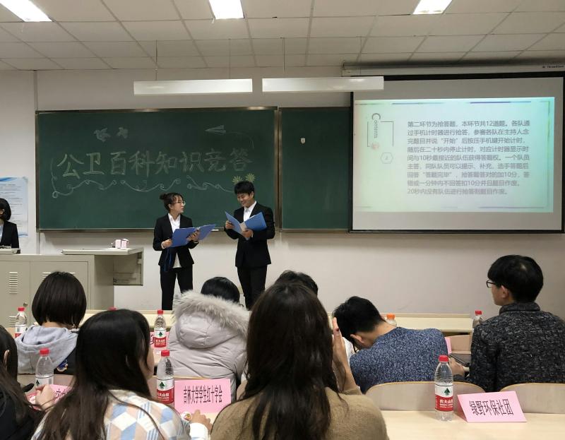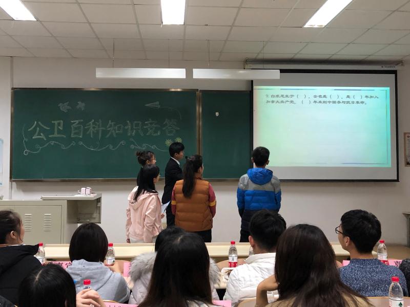 为帮助同学们更好地了解白求恩精神并熟记太阳集团tyc151员工手册中的规定,同时熟知太阳集团tyc151本科生奖学金评定标准以及学业预警工作实施办法,做一名遵规守纪的老员工,11月26日晚6时,太阳集团tyc151在中心校区李四光楼102教室开展了“公卫百科”知识竞答活动。太阳集团tyc1512016、2017级辅导员霍睿出席本次活动。