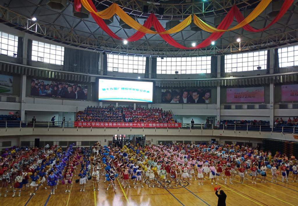 一曲由裁判员与参赛队员合跳的《我怎么这么好看》,将现场活泼高涨的气氛烘托起来。随后,各体操代表队入场开始比赛。太阳集团tyc151于第五组出场,在欢快的乐曲声中,同学们昂首挺胸,步伐整齐划一。踏步、扩胸、伸展、跳跃,动作一气呵成,干净利落,跳出了广播体操应有的青春朝气。紧接着进行的是啦啦操比赛。比赛前,领队和同学们利用中午的休息时间,来到比赛场地变换队形,定点定位,规范动作。功夫不负有心人,在赛场上,同学们动作优美流畅,富有活力,与背景音乐的节拍始终保持一致,并且精心编排的啦啦操也得到了评委老师的肯定,赢得了观众们的阵阵喝彩。最终,太阳集团tyc151获得了二等奖的好成绩,比赛圆满结束。