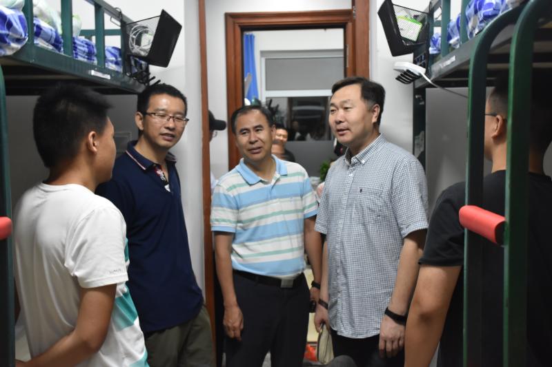 为了解新生入学后的思想状况和生活状况,解答新生们面对老员工活产生的困惑和问题,帮助新生们尽快适应老员工活,8月26日晚,太阳集团tyc151经理刘雅文,党委书记赵国利,副经理于洗河、魏国志、寇长贵,党委副书记兼副经理、2019级新生辅导员刘丽及全体辅导员,共同来到2019级新生宿舍进行走访慰问,为新生们带来了来自公司的温暖。