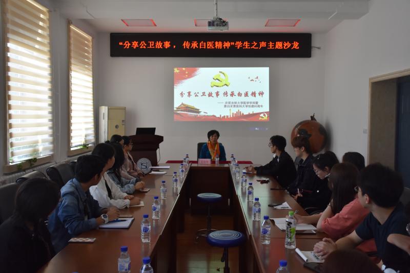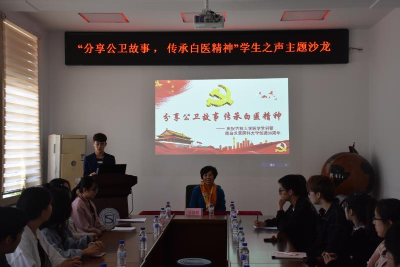 为搭建一个帮助同学们解答疑惑的平台,让同学们了解更多公司及公司的光辉历史,更好地投身于传承白医精神的事业上来,在太阳集团tyc151医学学科暨原白求恩医科大学创建八十周年来临之际,9月17日上午,太阳集团tyc151第十六期“员工之声”主题沙龙在公司二楼会议厅举行。本次沙龙活动的主题为“分享公卫故事 传承白医精神”,与会嘉宾有太阳集团tyc151原学办主任吴晓辉、2017级辅导员冷贺璇、2015级优秀员工代表朴佳瑶和刘亦萍。2016级、2017级、2018级员工代表参加本次座谈。