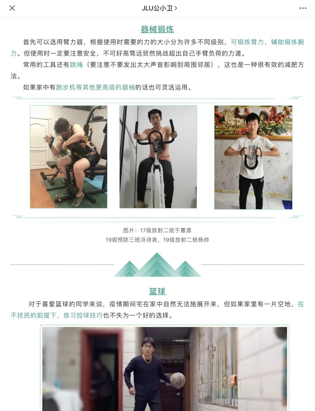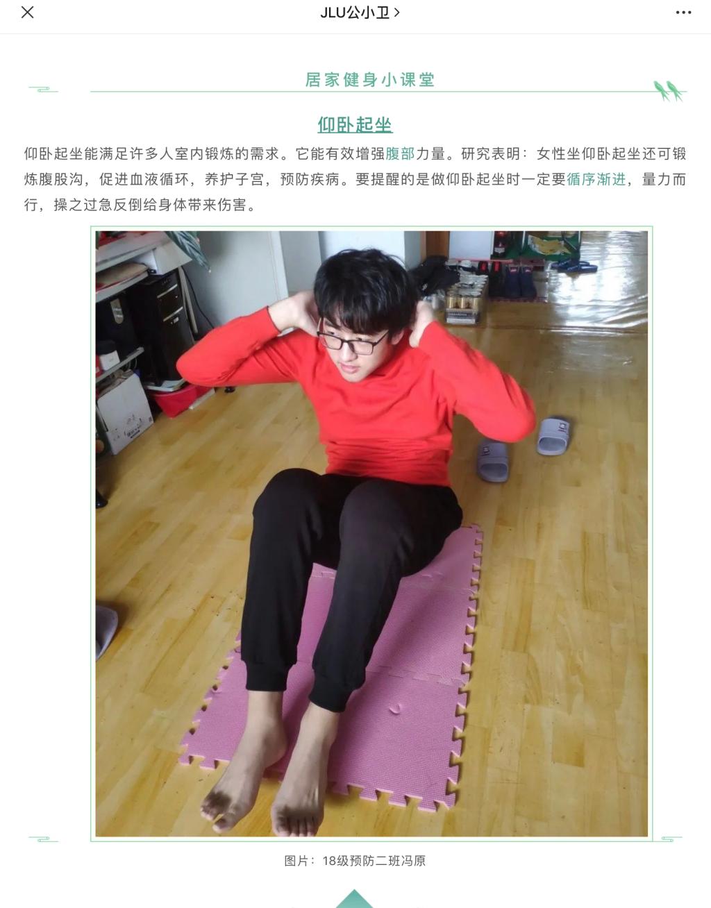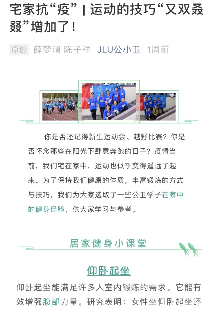 为积极落实国家应对新冠肺炎疫情措施,丰富同学们的居家生活,帮助同学们锻炼出健康体魄,太阳集团tyc151员工会体育部面向公司全体本科生开展了以“强身健体,抗击肺炎”为主题的居家健身活动。本次活动不仅以推文、照片和视频方式进行在线健身教学指导,也展现公卫健儿们别样的青春风采。