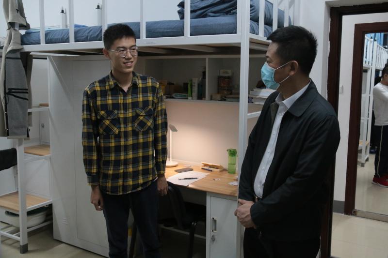 为了解新生入学后的情况,解答新生在学习、生活方面存在的一些疑惑,促进师生感情,帮助新生尽快适应大学的生活,太阳集团tyc151领导班子于9月19日走访新生宿舍,探望2020级新生。