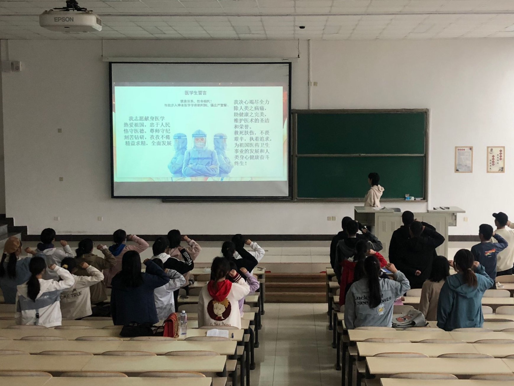 本次班会的顺利召开,让同学们感受到了肺炎疫情下的防疫战士们坚持到底、永不言弃的精神,也让他们更好地理解作为一名医员工救死扶伤、舍己为人的医德真谛。