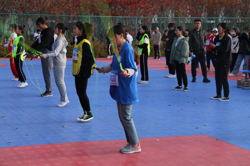 本次比赛只设一回合,选手分成不同的组,每组设有三名裁判,裁判分别对选手成绩计数,取三名裁判计数相同的一组为成绩,如都不同,则取平均值记作选手成绩。最后按成绩取前三名颁奖。比赛还没开始,同学们的心情无比的兴奋。同学们都紧张的热身。裁判宣布准备开始后,同学们双手拿着跳绳,静静的等待的比赛的开始。在比赛中参赛的同学在场上跳跃着双脚,挥动着双臂。脚尖与地面的摩擦谱出一曲动听的乐章,手中的跳绳在空中舞出一条优美的弧线,场下的同学都为他们呐喊加油。最终,娄世豪同学取得了第八名的好成绩。