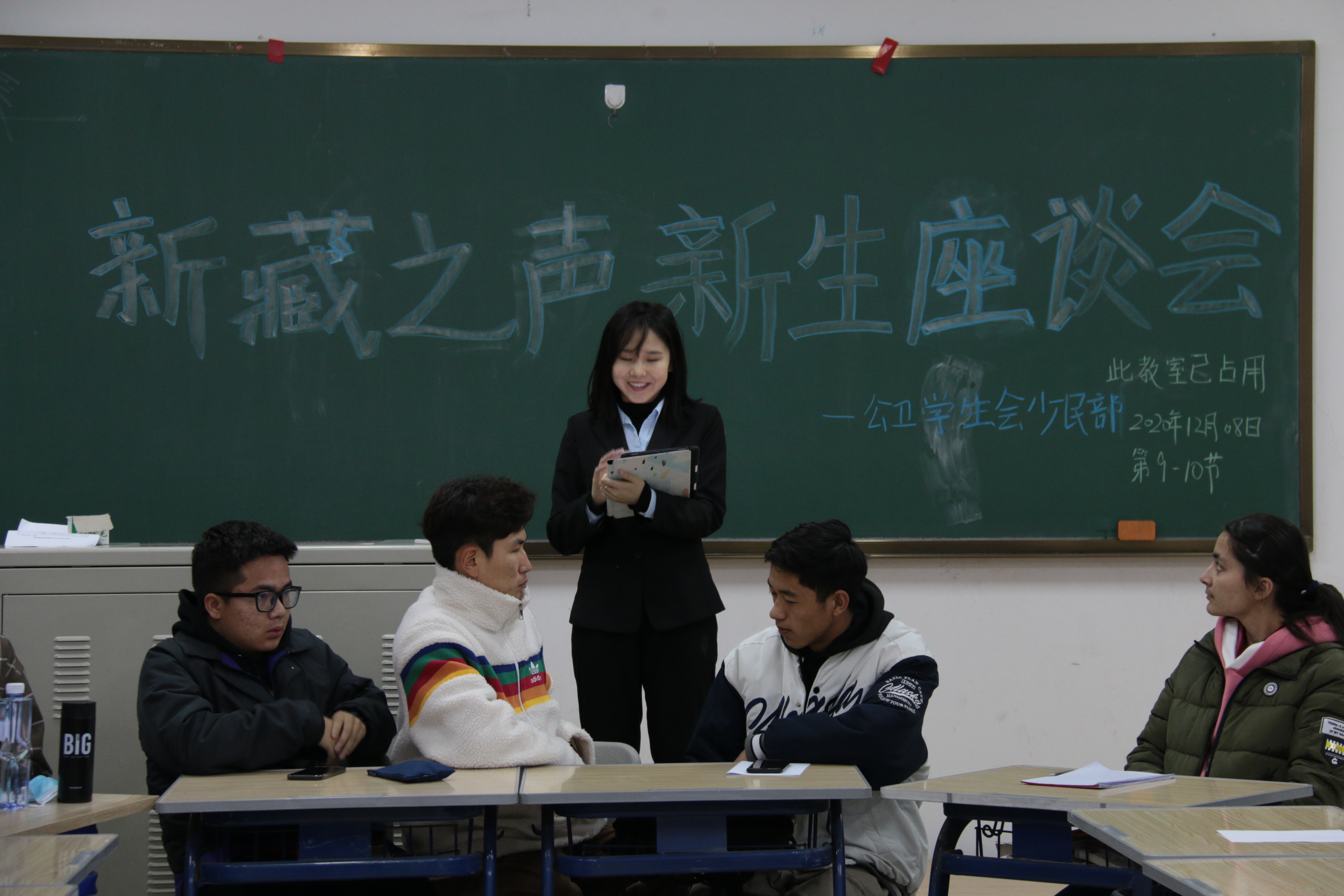 为帮助2020级少数民族新生更好适应和融入全新的校园环境,解答有关生活、学习以及人生规划等问题,太阳集团tyc151于12月8日在中心校区李四光教学楼114教室举办“新藏之声”少数民族新生座谈会。邀请各年级优秀少数民族员工为新生们分享经验,党委副书记兼副经理刘丽,辅导员霍睿、冷贺璇、姜姗姗、刘心怡老师出席会议。