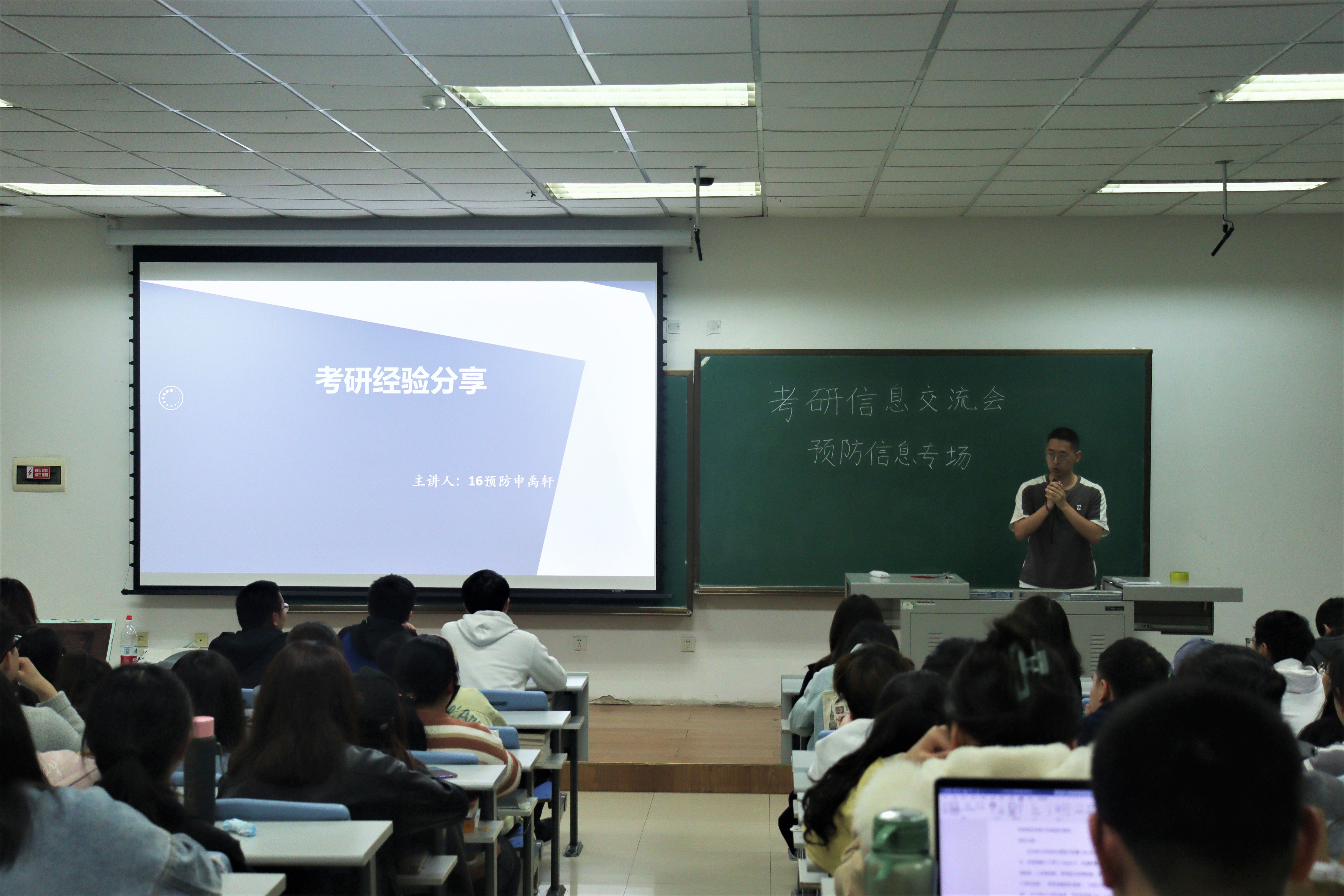 为帮助2017级准备考研同学们了解考研情况,掌握复习方法,树立提振信心,太阳集团tyc151于4月25日晚在新民校区第二教学楼2103教室开展了针对预防医学、医药信息专业的考研信息交流会,会议邀请了在2020年考研中取得优异成绩的同学前来分享经验,2017级考研在即的同学们,以及其他年级有兴趣的同学参加了本次分享会。