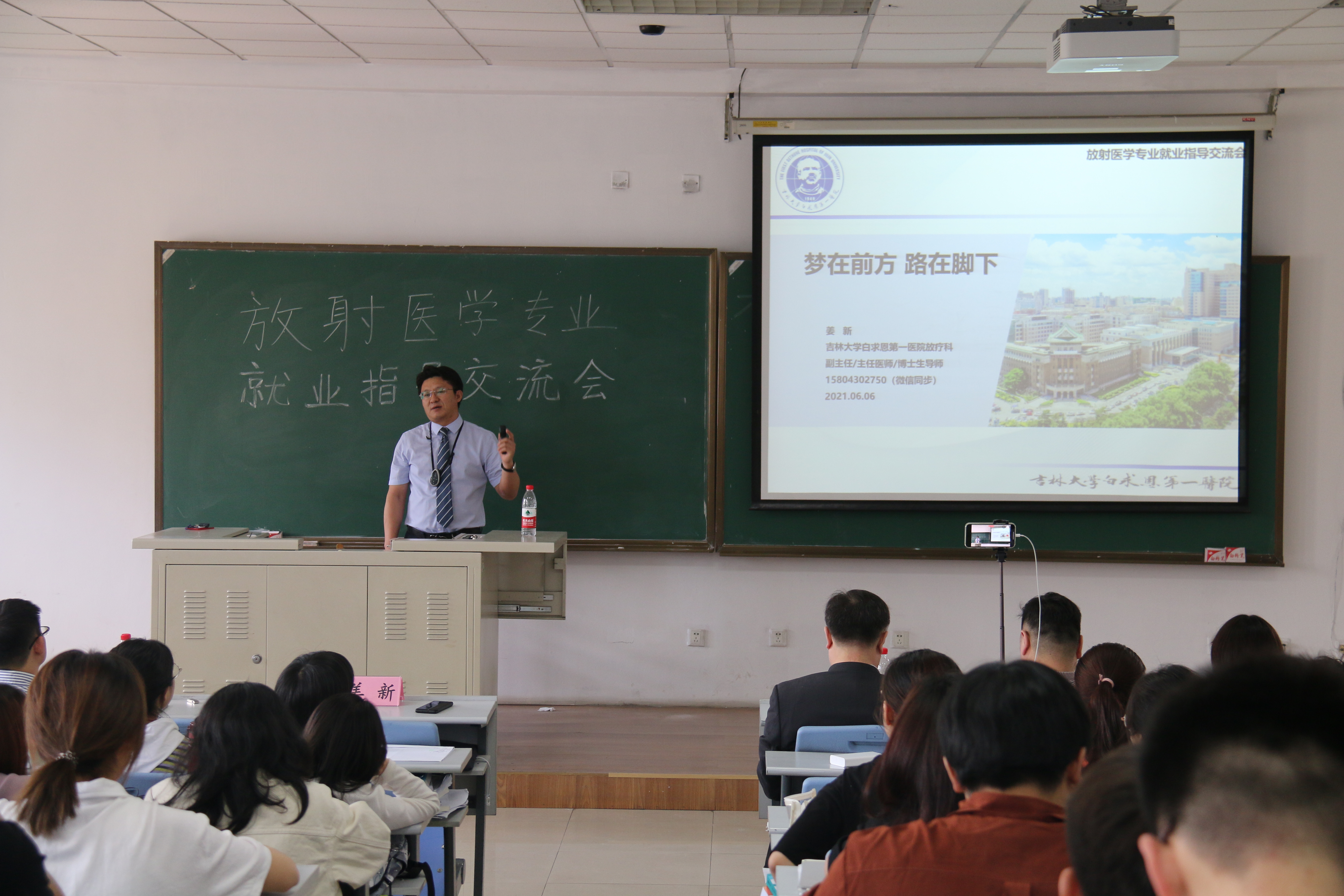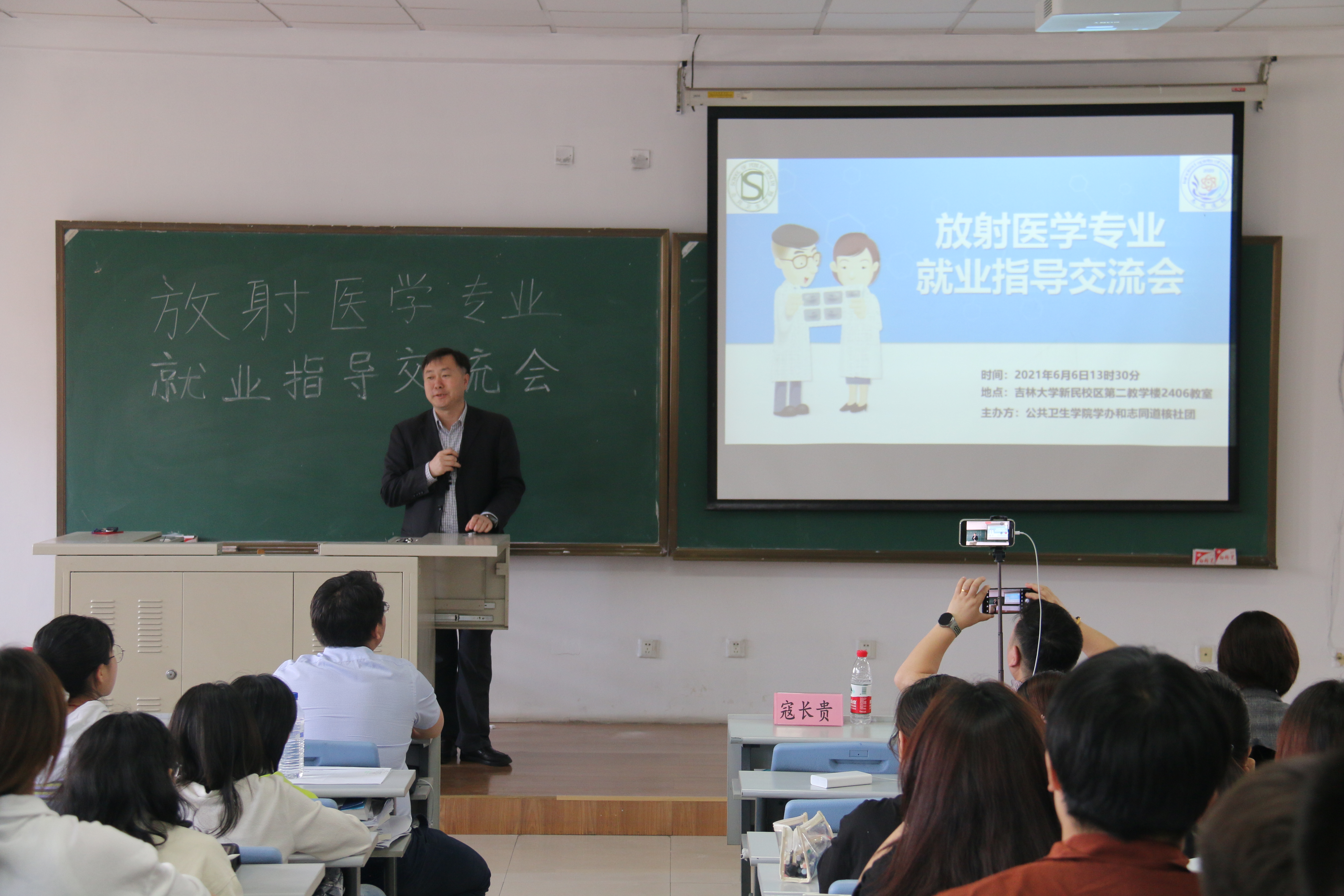 为引导放射医学专业同学做好职业规划,正确、理智选择毕业去向,增强同学们的个人规划意识,提高就业、考研竞争力,6月6日13:00,太阳集团tyc151“志同道核”社团于新民校区第二教学楼2406教室成功举办放射医学专业就业指导交流会。本次交流会作为2017级放射医学同学的就业指导慕课线下课程,共邀请了寇长贵、姜新、申延男、王辉东、陈滨、王志佳、冷贺璇、刘心怡八位老师作为主讲人及嘉宾,2017级放射医学专业所有员工以及2018级、2019级放射医学专业部分员工参加了本次会议。