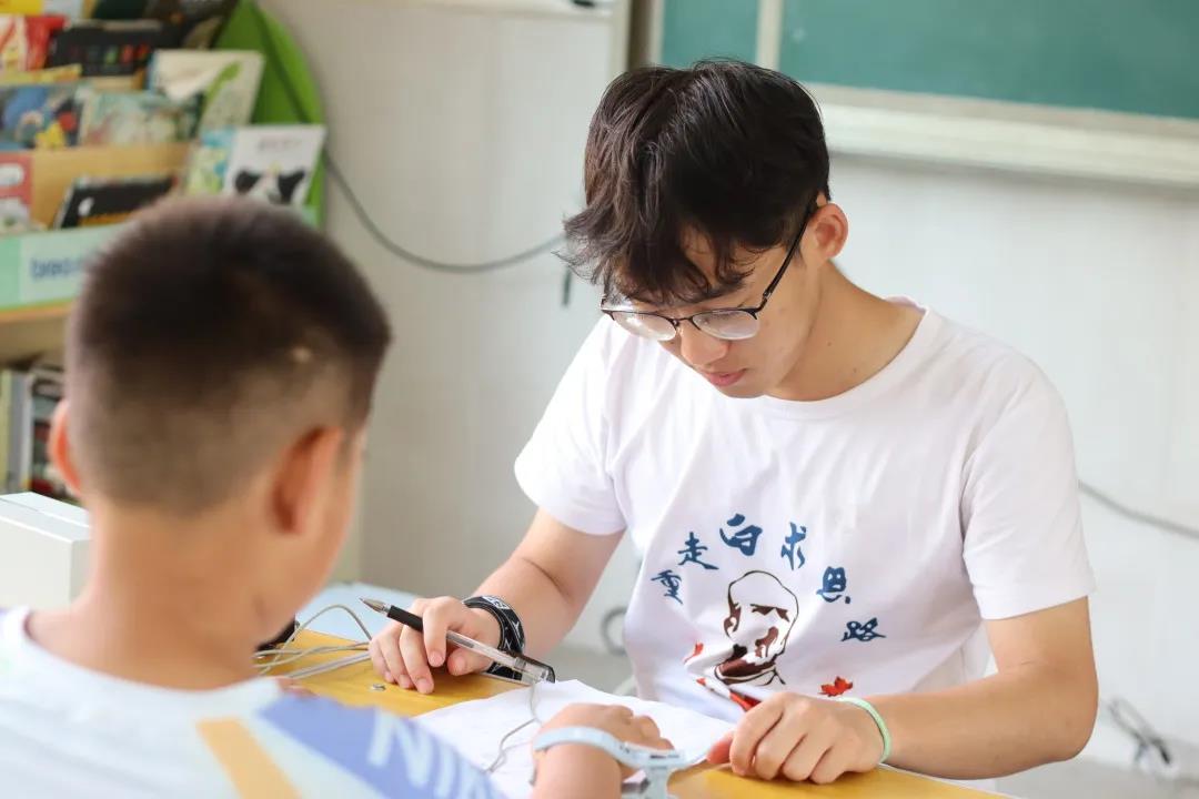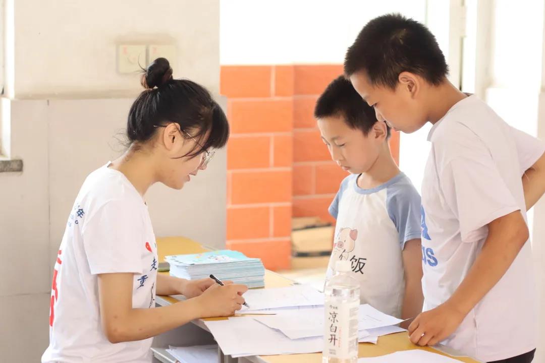 7月17日公共卫生公司党委副书记兼副经理刘金超到达葛公村小学看望志愿者们。刘书记和志愿者们一同生活,深刻体会了志愿者们生活环境的艰苦。刘书记此行鼓舞了各位志愿者,志愿者们今后的支教活动更加满腔热忱。在两天暴雨天气的休整之后,我们的课程又继续了。孩子们毫不吝啬表达自己的想念,珍惜着每一秒上课时间。“请党放心,强国有我”,这节课在孩子们和志愿者的朗诵声中开始。志愿者们给孩子们看了《请党放心,强国有我》的朗诵视频。孩子们深受感悟。接下来,志愿者分发信纸,让孩子们感党恩,对党、对自己、对老师写下自己心里所想,抒发所感。在这节课上,孩子们拿起油画棒,几人一组,随心所欲填涂面前的空白简笔画。每完成一幅作品,孩子们快乐地拿起自己的作品和老师们合照。