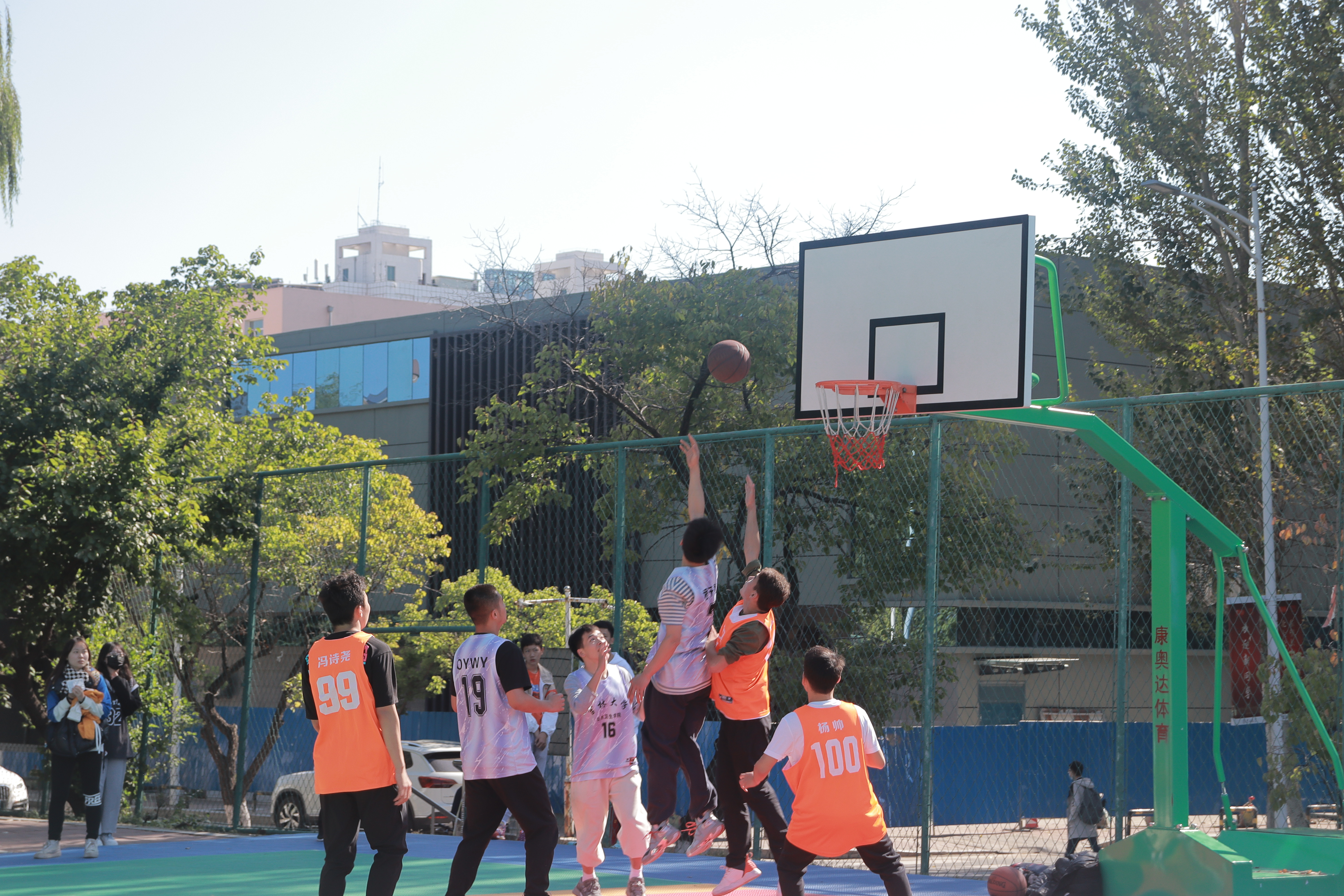 比赛于上午九点正式拉开帷幕。本次比赛共分为四个小节,每小节12分钟。秋风带来了一丝丝寒冷,可同学们的热情丝毫未减。随着哨声的响起,双方队员你争我夺,你攻我守,赢来了同学们的阵阵欢呼,很快,比赛就到了白热化的阶段。2021级新生靠着初生牛犊不怕虎的劲大胆进攻,抢断、传球、运球、投球,干净利落的动作获得了现场同学们的掌声。可高年级的同学凭借着默契的配合、出色的防守打乱了21级同学的节奏,接连得分。赛场上空,球划过的一道道优美弧线展现的是当代老员工的风采以及青春活力!终场哨声响起,比赛以38:92的比分画上了句号,高年级联队获得了胜利。比赛结束后,新生和老生进行了亲切的交流,最后在场的球员和观众一起合影留恋。