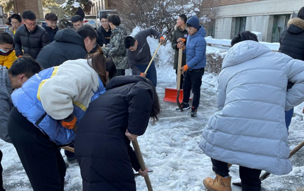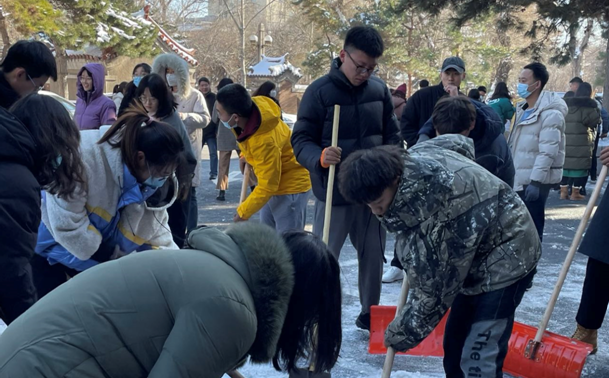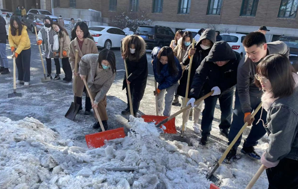 近日来长春出现暴雪天气,强降雪对校内交通与员工出行产生一定影响。 为了确保师生人身安全,确保校园内道路畅通,11月12日中午,太阳集团tyc151组织在校教师与研究生清扫院内积雪,清雪活动得到了全体师生的积极响应,师生有序分工,头顶寒风,相互配合,共同克服积雪厚、天气冷等困难,以饱满的热情和充足的干劲铲冰清雪,活动现场大家享受着劳动中的愉快欢欣,脸上都洋溢着灿烂的笑容。师生们充分发挥团队精神,齐心合力、团结合作,经过一个多小时的共同奋战,院内积雪基本清理干净。