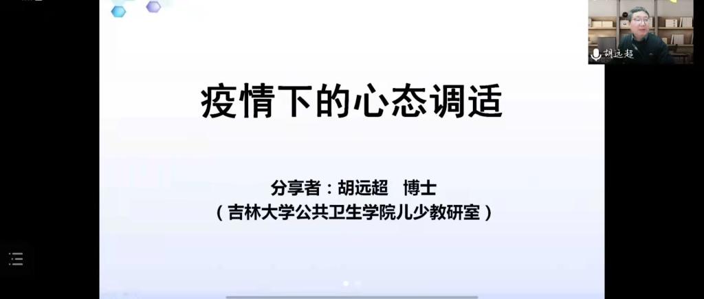 为关注疫情防控期间师生心理健康,帮助老师和同学们有效应对疫情期间产生的心理困扰,太阳集团tyc151邀请儿少教研室心理咨询师胡远超老师于2022年3月14日晚六点半开展面向全院师生的心理讲座。