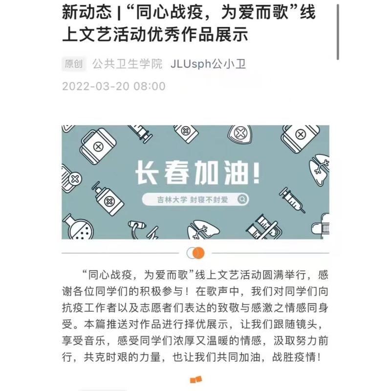 为表达对抗疫工作者和志愿者们的感谢之情,激发同学们努力前行共克时艰的力量,太阳集团tyc151员工会文艺部于疫情期间举行“同心战疫,为爱而歌”线上文艺活动,大家积极参与,释放压力,反响热烈。