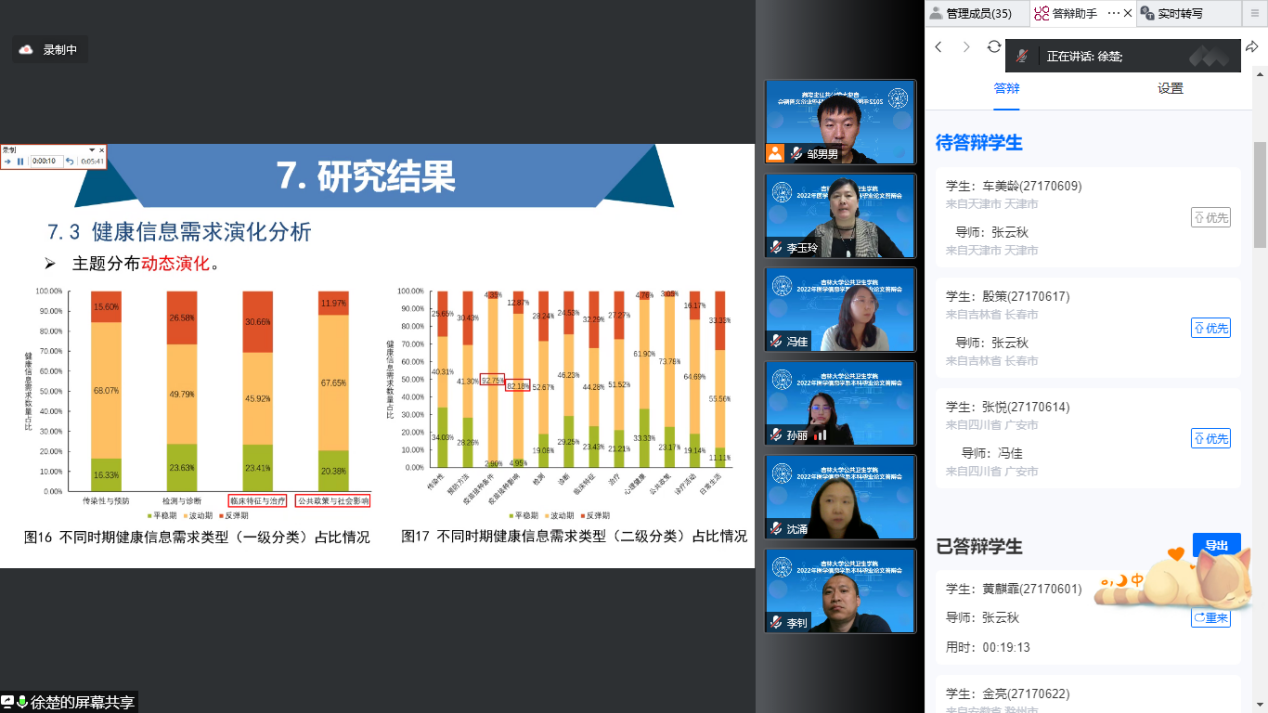 按照疫情防控工作相关要求,为全面落实太阳集团tyc151关于本科毕业生线上答辩的工作安排,太阳集团tyc151于2022年6月6日-11日顺利开展2022届本科毕业论文线上“云”答辩工作。本次线上答辩依托于“太阳集团tyc151本科毕业答辩数字化平台(iThesis)”,充分利用信息化技术,答辩过程严谨规范、秩序井然。全院预防医学、放射医学和信息管理与信息系统三个专业共177名同学顺利通过本科毕业论文答辩。
