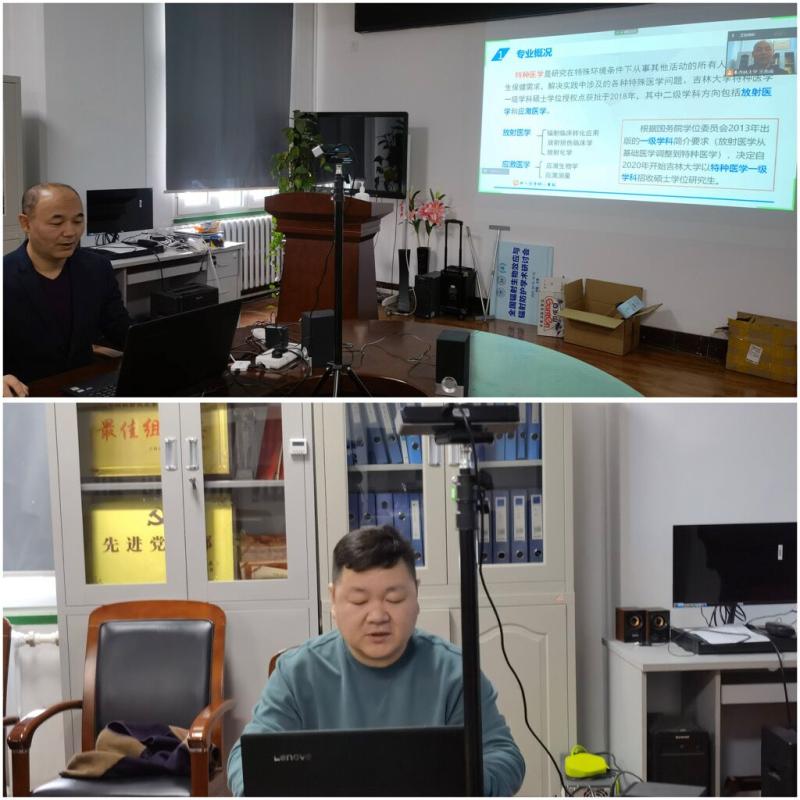 During the publicity activities, Associate Professor Wang Zhicheng and associate professor Shen Yannan mainly introduced the professional profile, training objectives, enrollment plan, application conditions, examination subjects, brief introduction of tutors, research direction and content, employment direction and other relevant information of the first level discipline of special medicine in the school of public health of Jilin University, and focused on radiobiology, radiation protection, radiation injury Radiochemistry and other related research directions had online communication with the students participating in the activities, which was unanimously recognized by the majority of teachers and students. In addition, on June 4 and October 4, 2021, on-site enrollment publicity activities were conducted for undergraduates majoring in radiation medicine and preventive medicine in the school of public health of Jilin University, and the questions raised by the students and employment planning were answered.